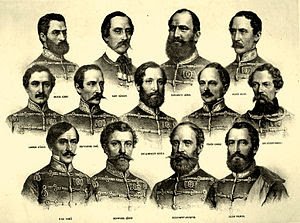 Knezić Károly, Nagysándor József, Damjanich János, Aulich Lajos, Lahner György, Poeltenberg Ernő, Leiningen-Westerburg Károly, Török Ignác, Vécsey Károly, Kiss Ernő, Schweidel József, Dessewffy Arisztid, Lázár Vilmos